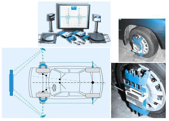 Развал схождение включает в себя комплект дополнительных зеркал, связывающих переднюю ось автомобиля с задней. Теперь стало возможным измерение углов установки задних колес и перекоса осей автомобиля. Универсальные кронштейны обеспечивают установку зеркал на любые колесные диски диаметром от 12 до 18 дюймов. Лазерный стенд развал схождения СДЛ-5. Поворотные круги.